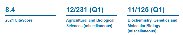 • 在“农业与生物科学(综合)”类别 (231种期刊) 中排名第12位 (Q1)