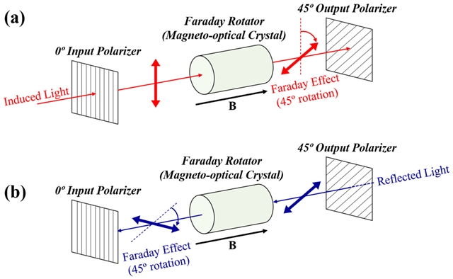 图5. 采用磁光晶体作为法拉第旋转器的法拉第隔离器原理