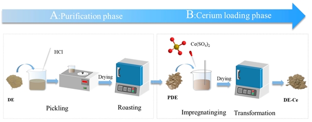 图7 铈改性硅藻土除磷吸附剂制备流程