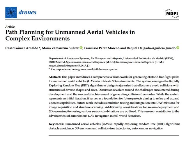 本文介绍了一种在复杂 3D 环境中为无人机 (UAV) 生成无障碍飞行路径的综合框架。该系统利用快速探索随机树 (RRT) 算法来设计轨迹,以有效避免与各种形状和大小的结构发生碰撞。