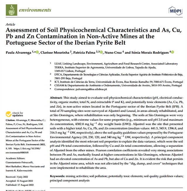 中文标题:伊比利亚黄铁矿带葡萄牙地区非活跃矿山土壤理化特性及砷、铜、铅、锌污染评估