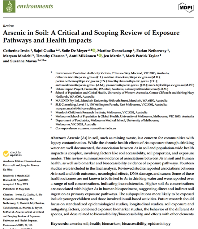 中文标题:土壤中的砷:暴露途径和健康影响的批判性和范围审查