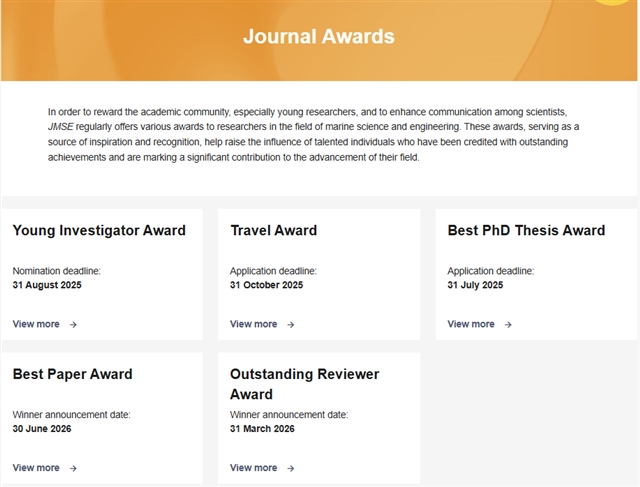 JMSE期刊奖项申请持续开放