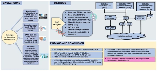 (1) 本文揭示了神经COVID-19诊断的挑战,发现脑脊液(CSF)中SARS-CoV-2 RNA的检出率极低,但抗SARS-CoV-2 IgG和IgM抗体检测具有高特异性(100%),可作为重要辅助诊断工具。