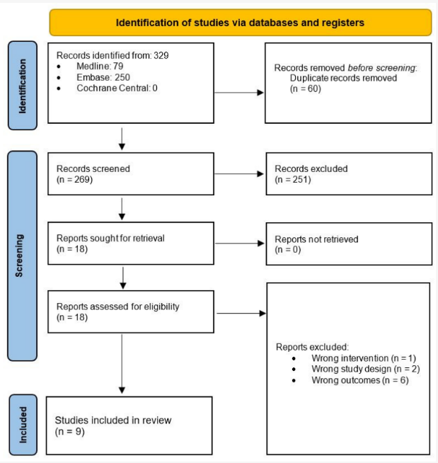 本研究依照PRISMA指南及Arksey and O’Malley框架进行范围性综述。研究团队于2023年10月18日通过Medline与Embase数据库进行计算机辅助检索,结合医学主题词(MeSH)与GLP-1受体激动剂、GLP-1激动剂药物(包括其上市商品名)、阻塞性睡眠呼吸暂停(OSA)及其他睡眠呼吸障碍(OSAHS)等关键词。纳入标准为英文、同行评审的全文文章,研究需探讨GLP-1RA对OSAHS的作用。排除标准包括非英文、非全文文章,研究其他药物或为动物实验。两位独立研究者进行文献筛选与数据提取,分歧通过协商解决,必要时由第三位研究者裁决。质量评估采用Newcastle-Ottawa量表(NOS),得分<5为低质量,6–7为中等质量,8–9为高质量。