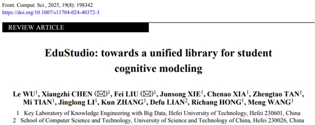 Le WU, Xiangzhi CHEN, Fei LIU, Junsong XIE, Chenao XIA, Zhengtao TAN, Mi TIAN, Jinglong LI, Kun ZHANG, Defu LIAN, Richang HONG, Meng WANG. EduStudio: towards a unified library for student cognitive modeling. Front. Comput. Sci., 2025, 19(8): 198342