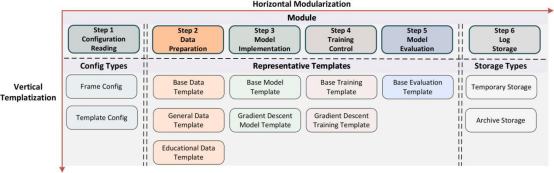 EduStudio的设计哲学包含两个方面:从横向来看,EduStudio采用模块化,分离了每个算法的主要步骤流程,保证灵活性;从纵向来看,EduStudio使用继承风格的模板来实现每个模块,保证复用性。