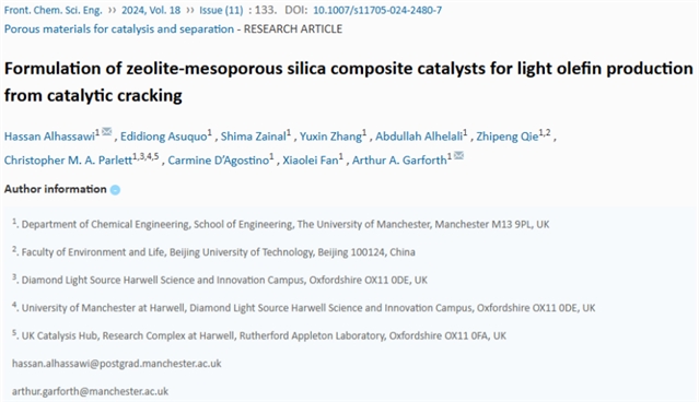 论文标题:Formulation of zeolite-mesoporous silica composite catalysts for light olefin production from catalytic cracking
