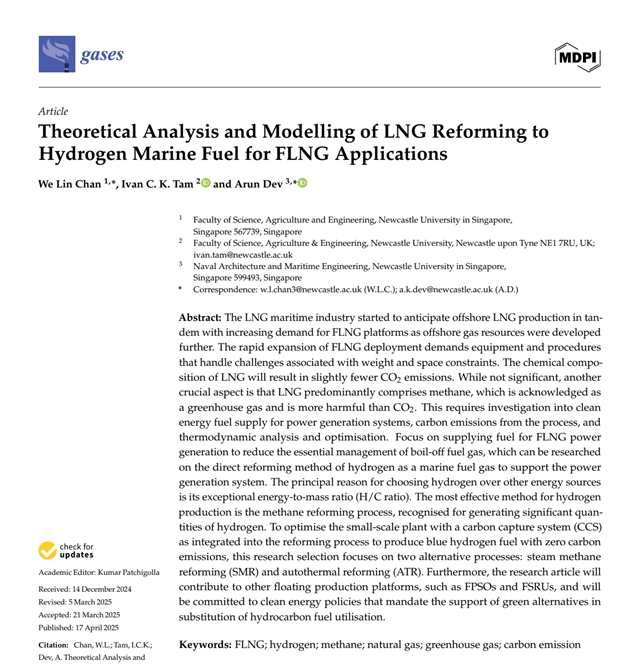 浮式液化天然气(FLNG)应用中液化天然气重整制船用氢燃料的理论分析与建模