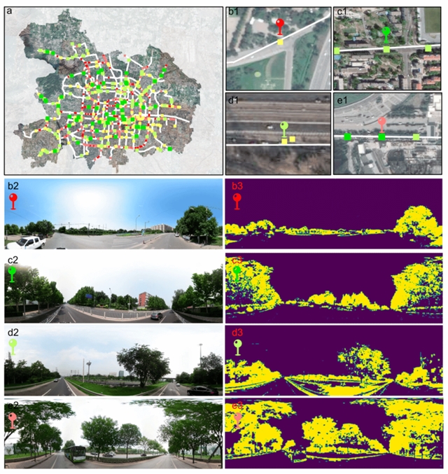 图5. 基于街道全景影像和居民绿视率的潜在绿道障碍点识别。