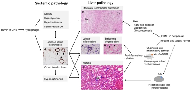 图2. MASH病理学和涉及BDNF的可能致病机制。