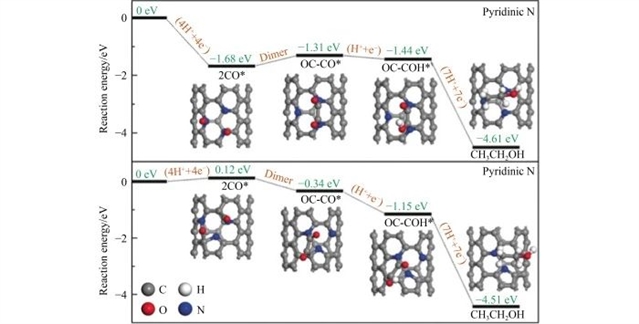 图1 在吡啶和吡咯酸N位点上电还原CO2为乙醇的计算反应能量
