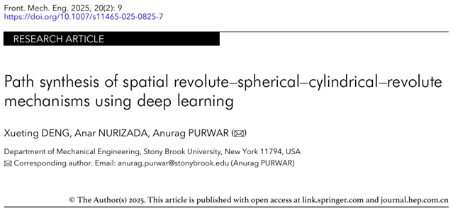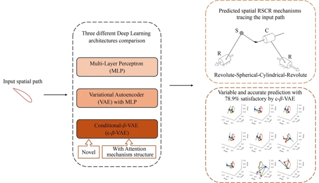 《Frontiers of Mechanical Engineering》2025年第20卷第2期的一篇题为“Path synthesis of spatial revolute–spherical–cylindrical–revolute mechanisms using deep learning”的研究论文,引入一种基于条件β变分自编码器(c-β-VAE)的新颖模型,旨在找出连杆曲线与机构参数之间的非线性映射,为路径综合问题提供多样化的解决方案。