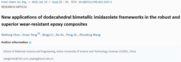 Weilong Chen, Jinian Yang, Bingyi Li, Xia Xu, Peng Jin, Zhoufeng Wang. New applications of dodecahedral bimetallic imidazolate frameworks in the robust and superior wear-resistant epoxy composites. Front. Chem. Sci. Eng., 2025, 19(5): 36 https://doi.org/10.1007/s11705-025-2537-2