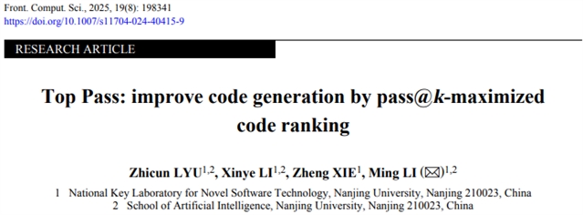 Zhicun LYU, Xinye LI, Zheng XIE, Ming LI. Top Pass: improve code generation by pass@k-maximized code ranking. Front. Comput. Sci., 2025, 19(8): 198341