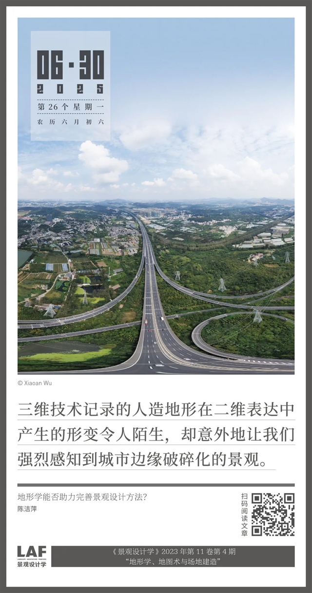 在风景园林学科背景下,地形学试图通过不断更新迭代的工具媒介,研究复杂且持续演变的人地关系。这一尝试保持着地形抽象概念与具体感知之间的张力,既可推动专业科学技术的发展,又可保持对艺术表达的开放。因而,地形设计或可成为一种有效途径,助力完善景观设计方法。