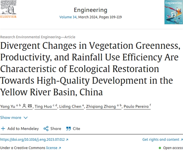 北京林业大学于洋等研究人员在中国工程院院刊《Engineering》发表了题为“Divergent Changes in Vegetation Greenness, Productivity, and Rainfall Use Efficiency Are Characteristic of Ecological Restoration Towards High-Quality Development in the Yellow River Basin, China”的研究论文,深入探讨了黄河流域植被绿度、生产力和降雨利用效率的变化特征及其相互关系,为该流域的生态修复和高质量发展提供了有价值的见解。