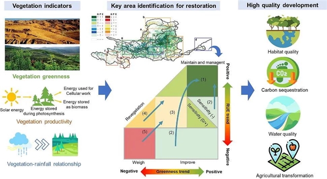 论文标题:Divergent Changes in Vegetation Greenness, Productivity, and Rainfall Use Efficiency Are Characteristic of Ecological Restoration Towards High-Quality Development in the Yellow River Basin, China
