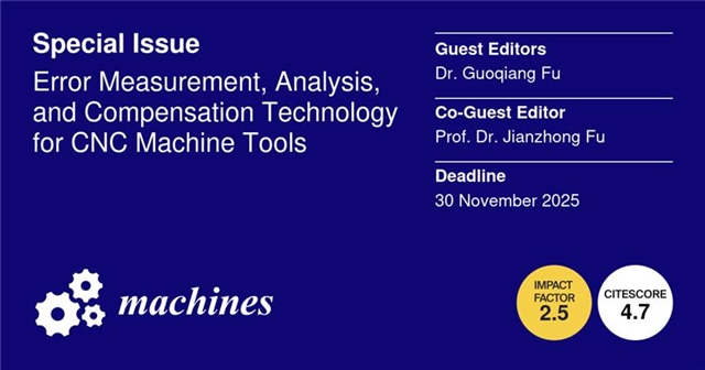 | Machines:西南交通大学付国强副教授等人创建特刊——对数控机床的误差测量、分析和补偿技术 | MDPI 特刊征稿 |