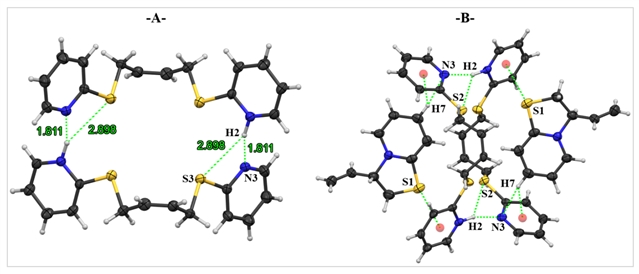 摘要:通过顺式-ClCH2CH=CHCH2Cl与原位生成的2-硫代吡啶钾Py-SK反应,制备了烯烃二硫醚(Z)-1,4-双(2-吡啶基硫代)丁-2-烯Z-PyS(CH2CH=CHCH2)SPy (L),并通过红外和核磁共振光谱进行了分析。为了研究多核碘铋酸盐配合物的化学性质,将两当量的BiI3与L在甲醇溶液中反应,得到阴离子四核标题化合物(C14H15S2N2)2(C9H10SN)2[Bi4I116],其中N-质子化的(Z)-1,4-双(2-吡啶基硫代)丁-2-烯作为反离子。化合物1通过红外和紫外光谱进行了表征;在100 K下进行的单晶X射线衍射研究确定了四核骨架的形成。此外,在Bi(III)的催化下,Z-PyS(CH2CH=CHCH2)SPy配体发生了不寻常的环化反应,生成了双环吡啶盐3-乙烯基-2,3-二氢噻唑并[3,2-a]吡啶,该盐带有末端乙烯基,补偿了Bi4I164−簇阴离子的第二个负电荷。通过Hirshfeld表面分析完成了SCXRD表征,揭示了晶体中发生的一些二次相互作用。