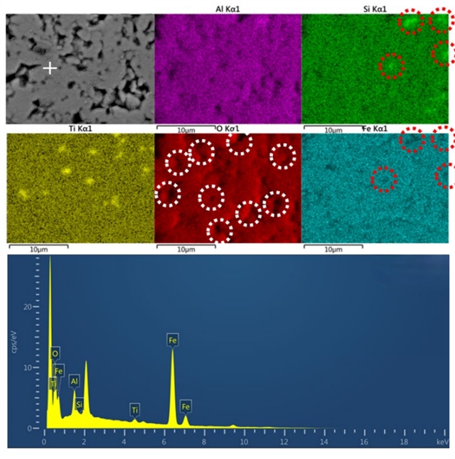 图3 赤泥组蓄热陶瓷材料的SEM-EDS能谱