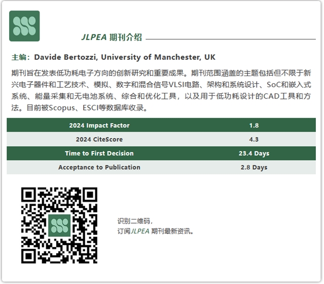 JLPEA为此特邀希腊塞萨洛尼基亚里士多德大学Spyridon Nikolaidis教授,德国德累斯顿工业大学Ronald Tetzlaff教授合作开设特刊Energy Consumption Management in Electronic Systems。本特刊旨在重点介绍有助于提高电子系统能效的创新方法、技术和策略。我们欢迎能够丰富我们知识,并为学术界和工业界提供新工具和新视角的研究。