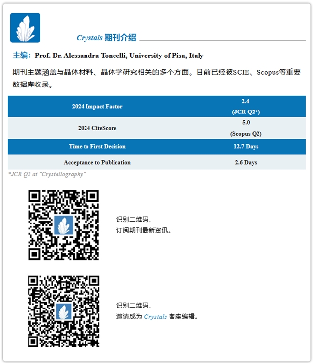 特刊链接:https://www.mdpi.com/journal/crystals/special_issues/FT0U178OUN