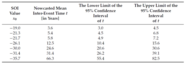 表1:两个连续 SOI 值发生之间的平均时间间隔