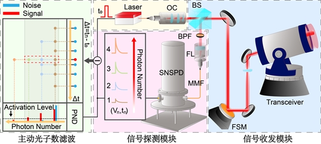 图1. 光子数分辨激光雷达系统示意图和APNF原理示意图。