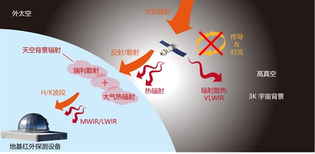 (1) 复杂的红外信号来源:太空目标的红外信号不仅来自自身热辐射,还来自对太阳辐射的反射。这两种信号来源截然不同,需要完全相反的隐身策略:既要抑制自身热辐射,又要减少太阳辐射反射。这种矛盾需求使得隐身器件的设计难度大幅增加。