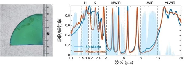 图2. 薄膜隐身器件及其吸收/辐射率光谱