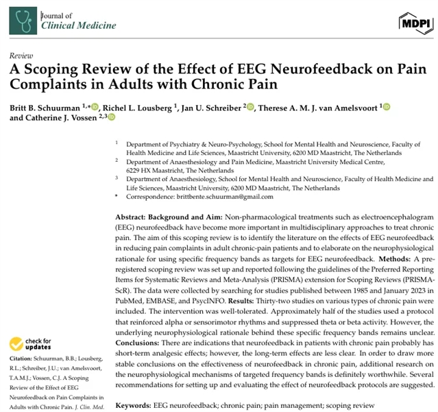 关于脑电图神经反馈对成人慢性疼痛患者“疼痛主诉”影响的范围综述