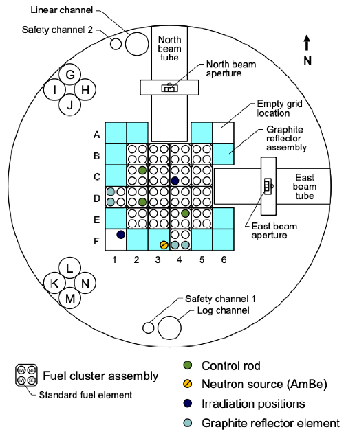 图示:NRAD反应堆堆芯布局,清晰展示了燃料元件与石墨反射层的空间分布关系