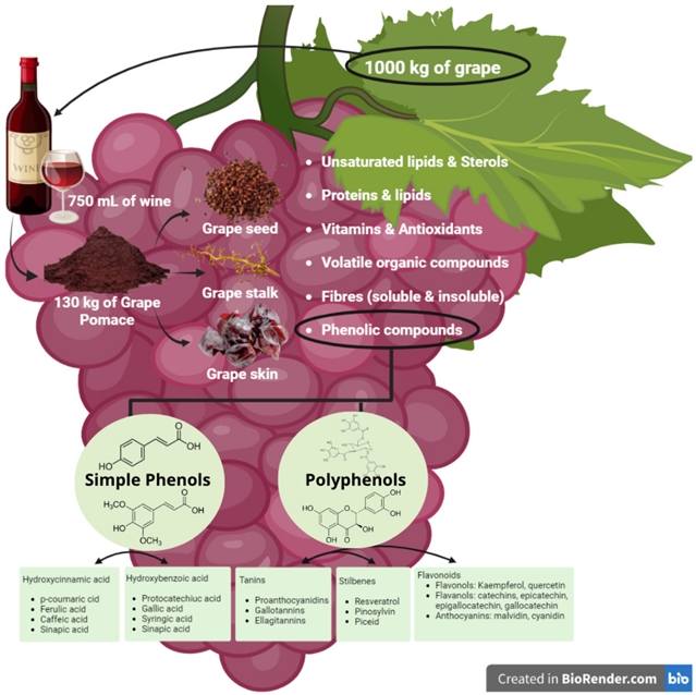 图1. 葡萄渣中呈现的增值化合物。