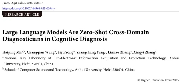 Haiping Ma, Changqian Wang, Siyu Song, Shangshang Yang, Limiao Zhang, Xingyi Zhang. Large Language Models Are Zero-Shot Cross-Domain Diagnosticians in Cognitive Diagnosis. Frontiers of Digital Education, 2025, 2(2): 17