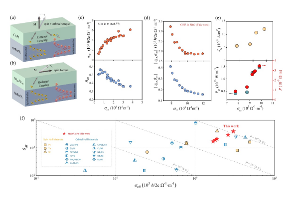 针对上述难题,科研人员选取4d过渡金属氧化物SrRuO3为研究体系,发现该体系中的轨道霍尔效应表现出全新的非传统标度律:随着材料中缺陷散射的增强即电导率降低,其轨道霍尔电导率和轨道霍尔角能协同增大。这为解决传统自旋霍尔效应中自旋霍尔角与自旋霍尔电导率的固有制约提供了新途径,实现了“一石二鸟”的效果。
