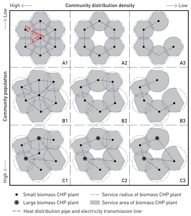 生物质热电联产厂的理想网络配置(A1)与实际配置(其它) © 张一飞,曲可晴,马晨烁,李蝉韵