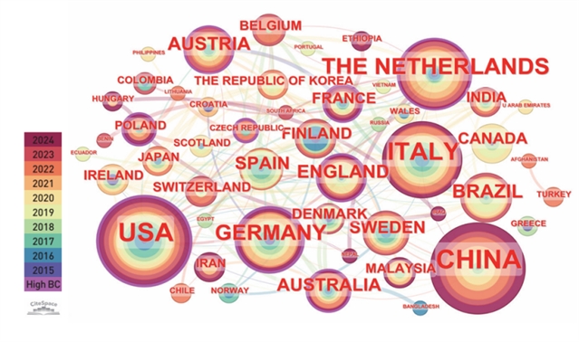 生物质能源空间规划领域的国际合作网络 © 张一飞,曲可晴,马晨烁,李蝉韵