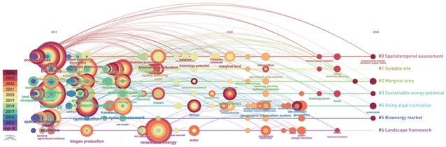 生物质能源空间规划领域中关键词共现聚类的时间演变 © 张一飞,曲可晴,马晨烁,李蝉韵