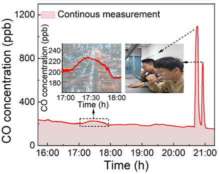 图6. 校园和人体呼吸中CO气体检测。图源: Light: Science & Applications