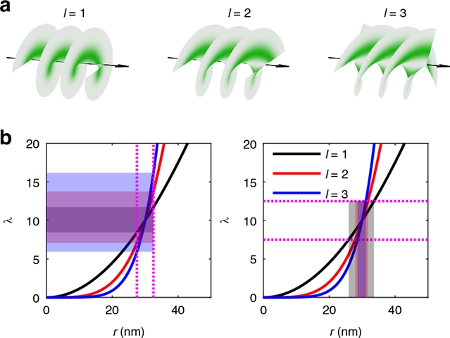 图1. 高阶涡旋光束提高定位灵敏度及降低定位误差