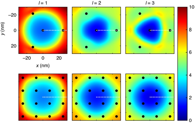 图3. 不同涡旋光束对荧光分子阵列的成像效果