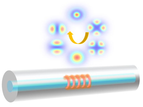 在高功率光纤激光器领域,相比于光纤放大器采用单程放大结构,采用单谐振腔结构的全光纤激光振荡器具备抗回光能力强、控制逻辑简单、系统结构紧凑等优势。这些特点使全光纤激光振荡器在工业加工领域广泛应用。然而,采用单谐振腔结构也带来了新的挑战。与放大器的单程放大结构不同,振荡器谐振腔内激光多程振荡放大的特性导致了更强烈的模式竞争与模式耦合效应,使得振荡器通常表现出比放大器更低的横向模式不稳定效应(TMI)阈值特性,成为其功率提升与应用的主要瓶颈。TMI会引起纤芯基模向高阶模耦合,这不仅会造成激光功率滞胀,而且还会造成激光光束质量的急剧下降,严重影响激光器的稳定运行与应用。已报道的光纤振荡器理论研究大多仅分析谐振腔内基模和第一阶高阶模式的耦合,然而在实际系统及应用中,基模和多个高阶模式的竞争与耦合普遍存在(如图1所示),使得模式耦合特性更为复杂。