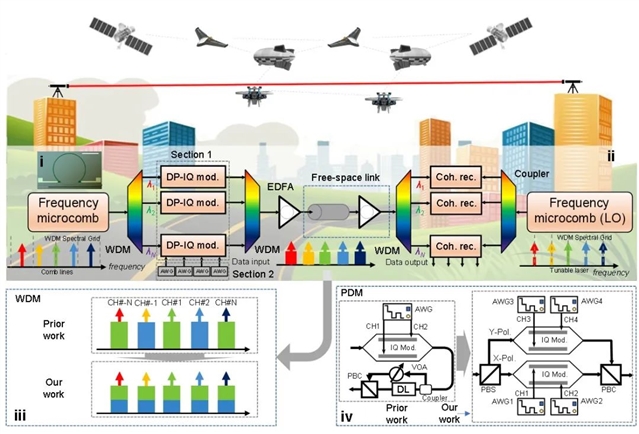 图1:基于Platicon微梳的自由空间太比特相干光通信