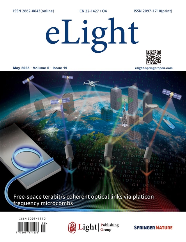 最近,美国加州大学洛杉矶分校等单位,首次在eLight(入选两期卓越计划)上发表题为“Free-space terabit/s coherent optical links via platicon frequency microcombs”的研究,利用芯片级Platicon光频率微梳实现了自由空间太比特级相干光通信。在160米的室内外混合链路中,该技术实现了高达8.21 Tbit/s的聚合数据传输速率,并在湍流条件下保持稳定。该成果为6G网络、空天地海一体化通信、卫星链路等大带宽需求提供了全新的解决方案。