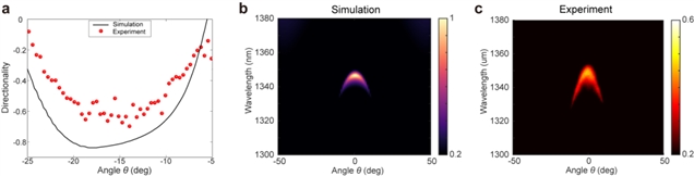 研究团队对样品的辐射单向性进行了光学显微角分辨测量。他们结合时域耦合模式理论和正交偏振测量方法,实验定量测量了共振模式辐射的单向性。与理论设计一致,在-20°~-10°角度范围内观测到了光学模式显著的辐射高单向性,从而保证了该角度范围内共振反射信号被按需“擦除”。