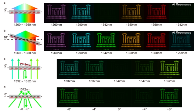 基于角度-波长联合选择性,仅通过单个元器件便可实现空间频率和光谱频率的选择性成像。研究团队在实验上成功演示了同时在0°和1342 nm实现窄带滤波的高对比度成像功能。该亚波长双层结构极大地简化了传统成像系统中复杂的空间滤波和光谱滤波装置,为紧凑式光成像与光计算提供了新的可能性。