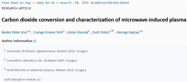 Balázs Péter Kiss, Csenge Emese Toth, István Slezsak, Zsolt Dobo, George Kaptay. Carbon dioxide conversion and characterization of microwave-induced plasma. Front. Chem. Sci. Eng., 2025, 19(7): 58