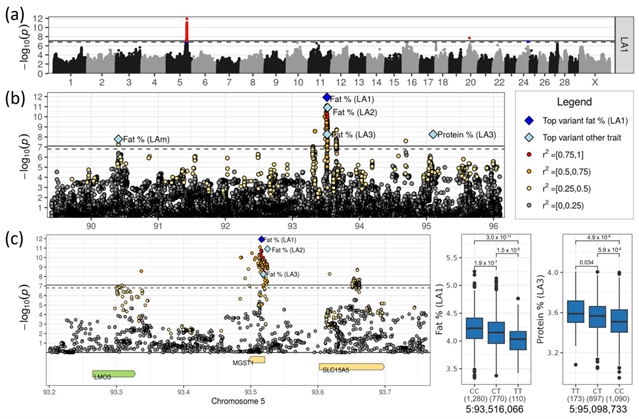 全基因组测序数据揭示影响德国黑斑牛(DSN)产奶量的新基因位点