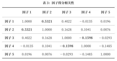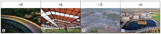 各因子相关性分析结果显示(表3),因子1(边界融合性)和因子2(形态创新性)之间呈现出最强的正相关性(0.5321),联系也最为密切(两个因子中得分较高图片重合度极高)。同时,因子1和因子2的方差贡献率最大,解释力度最强,说明这两个因子是光伏设施对中国乡村景观产生视觉影响的核心因素。另一方面,因子3和因子4具有最强负相关性,但数值仅为-0.1598,说明本研究的5个因子两两之间没有明显的负相关趋势。